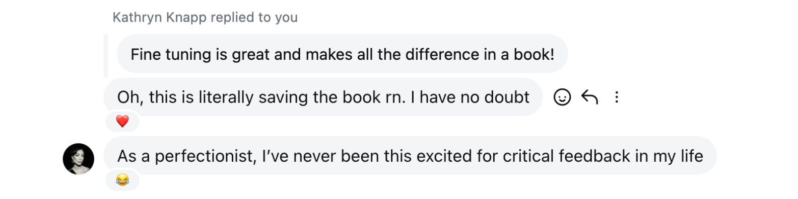 My job as your editor isn’t to rip your book to shreds. It’s to point out the places where your book could use some extra love.